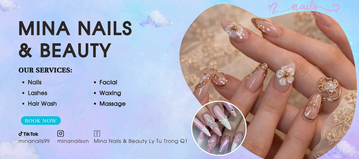 Chuyên cung cấp những dịch vụ chăm sóc, design móng, phù hợp với từng khách hàng. Mina Nails & Beauty có rất nhiều màu gel và mẫu Nails phù hợp cho những buổi tiệc quan trọng của quý khách hàng như tiệc cưới, đi chơi lễ, hẹn hò,..